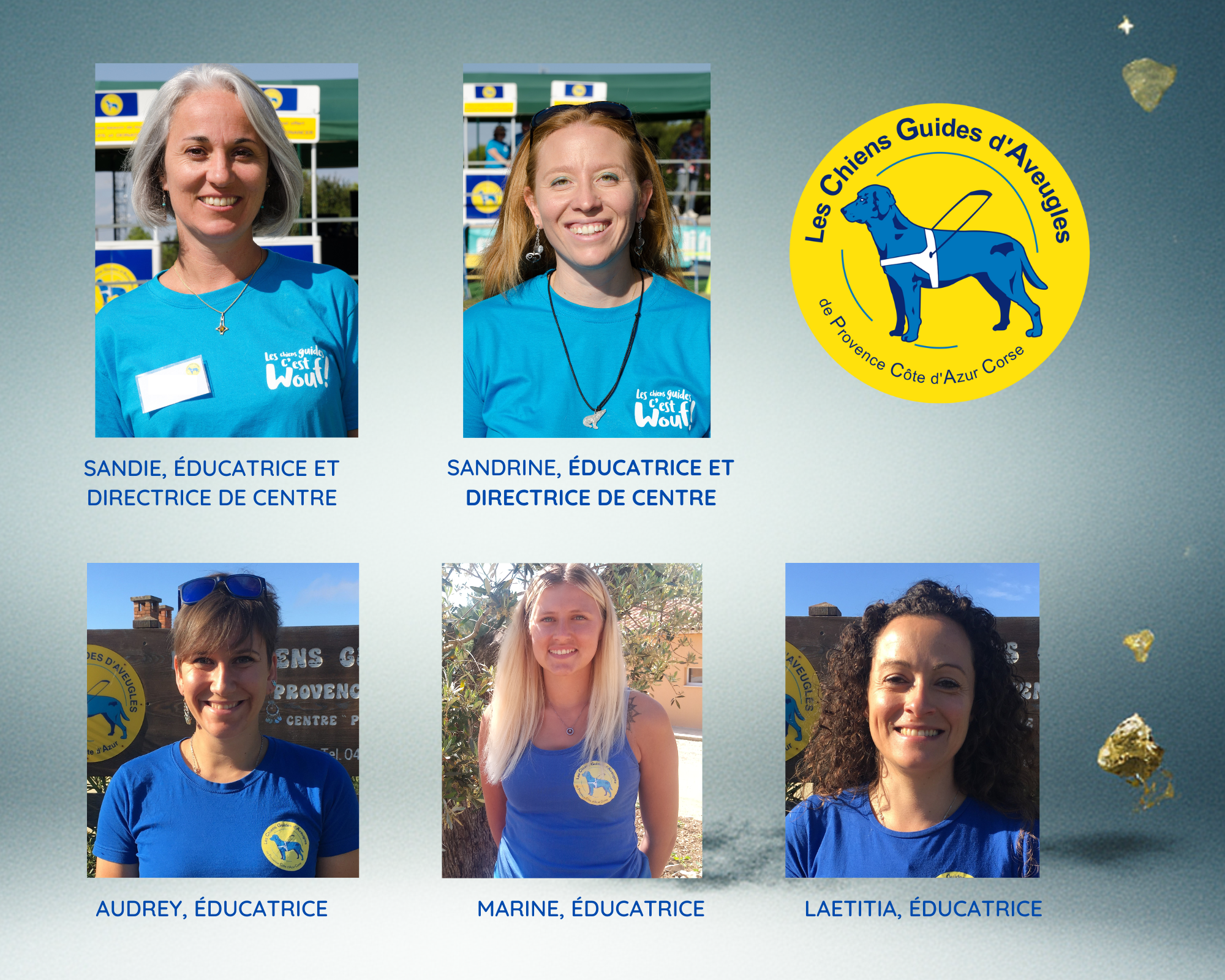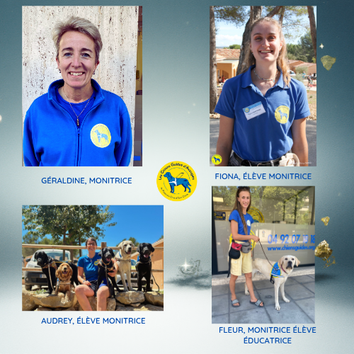 des éducateurs lors de la remise du chien guide.