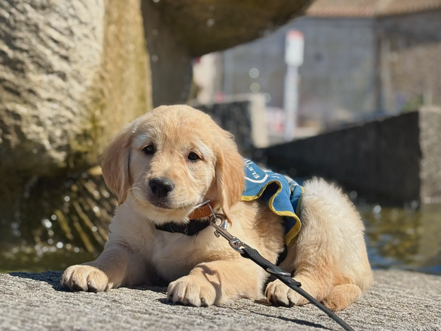 Mâle labrador né également fin 2024, VAMOS est un chiot calme mais énergique qui apprend vite. Jouer et sociable sociable, il s’entend aussi bien avec les jeunes chiens qu’avec les plus grands. Il continue de travailler sa concentration en ville et a famille d’accueil souligne déjà de beaux progrès : il dort seul et maîtrise de mieux en mieux les interdits.